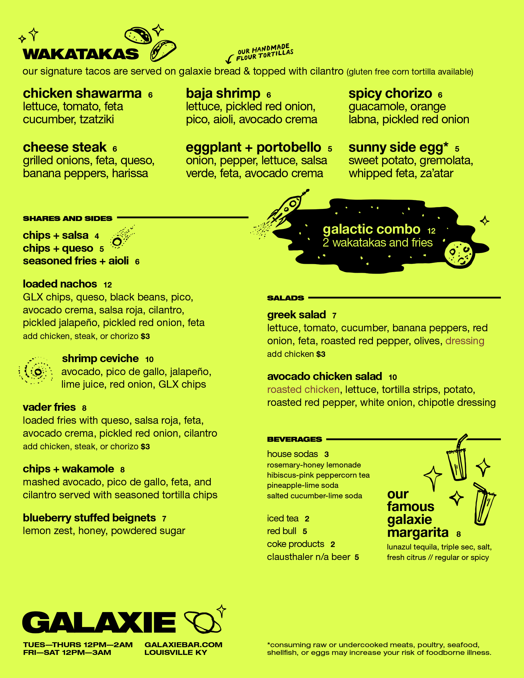 Menu design & illustrations and updating as needed, various event posters with corresponding social media, mural design and painting.