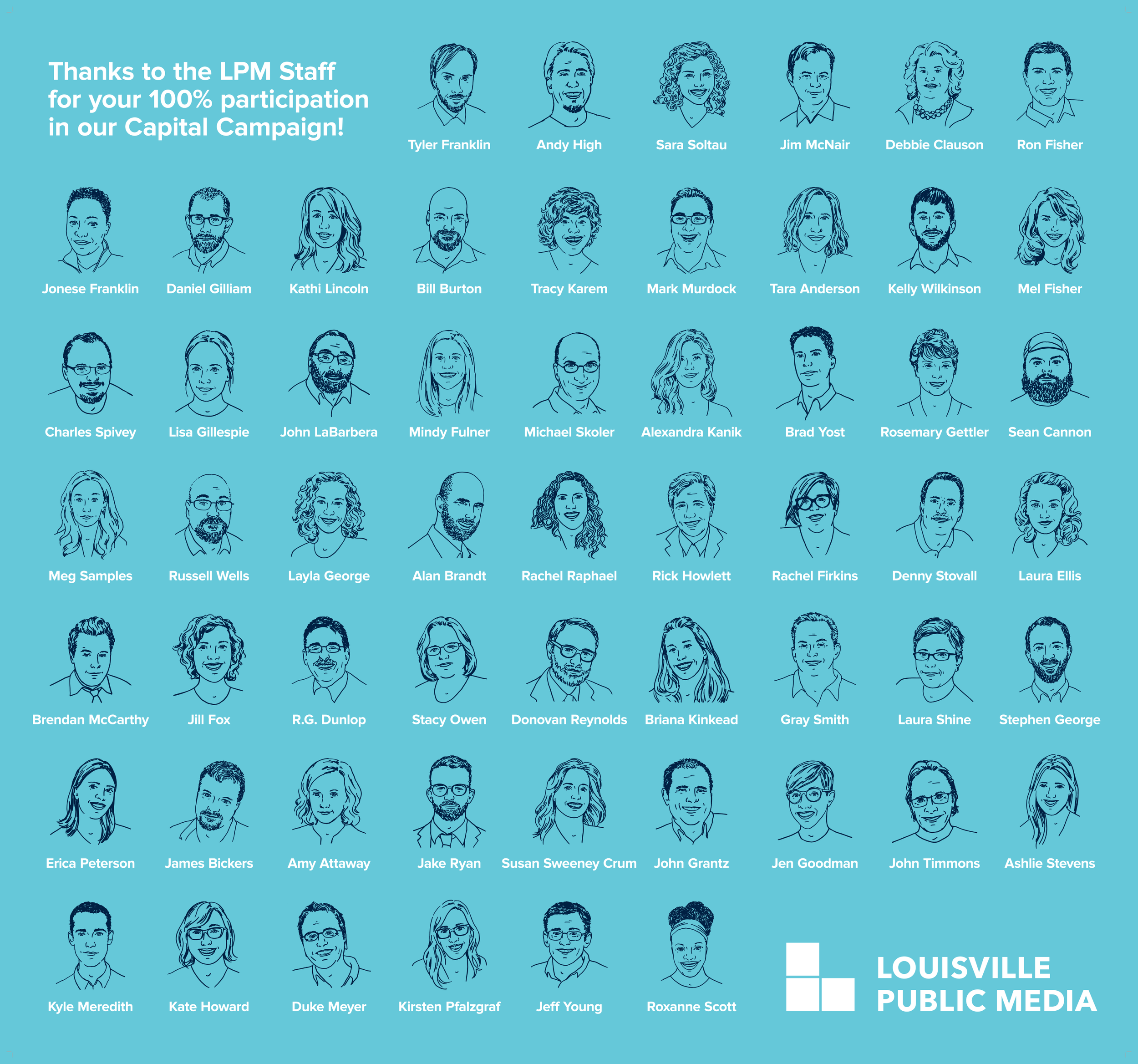 Create an illustrated guide thanking employees who donated to LPM’s Capital Campaign.